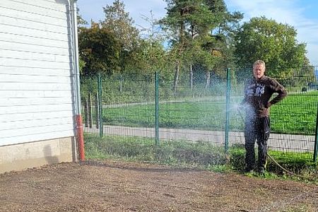 Am 08.10.22 haben Ute, Gerd, Moni und Thomas den Rasen eingesät, damit wir im nächsten Jahr wieder eine schöne Wiese haben.